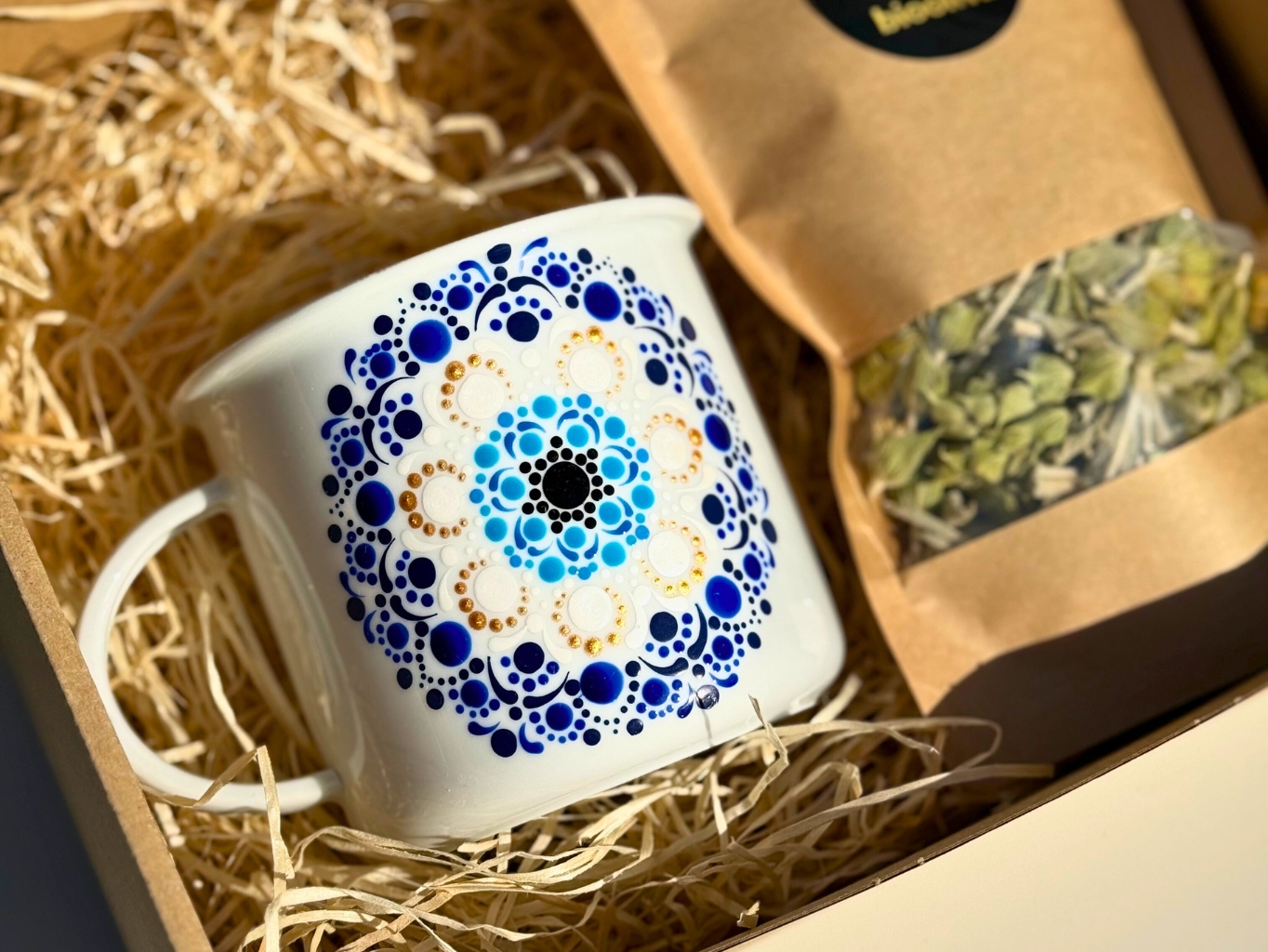 Každý hrníček je originál, který vznikl s láskou a citem pro detail. Spojuje se s přírodním čajem, který voní po Krétě – dohromady tvoří dárek, který pohladí po duši.