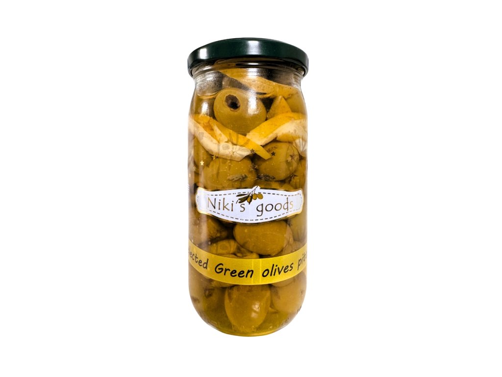 Tyto výjimečné zelené olivy odrůdy Chalkidiki byly sklizeny ručně, poté jemně grilovány pro zvýraznění jejich přirozené chuti a nakonec naložené do slaného nálevu s čerstvou citronovou kůrou.