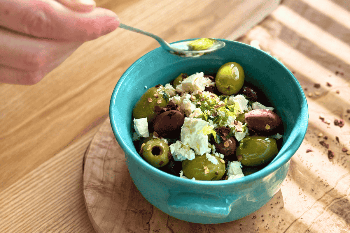 Video recept - Esence řecké kuchyně - Marinované olivy v olivovém oleji s bylinkami a sýrem feta