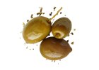 Zelené olivy Chalkidiki mají, pevnou masitou dužinu. Jejich výrazná chuť je zpestřena bylinkami a česnekem. Jsou ručně sbírané na řeckém poloostrově Chalkidiki.