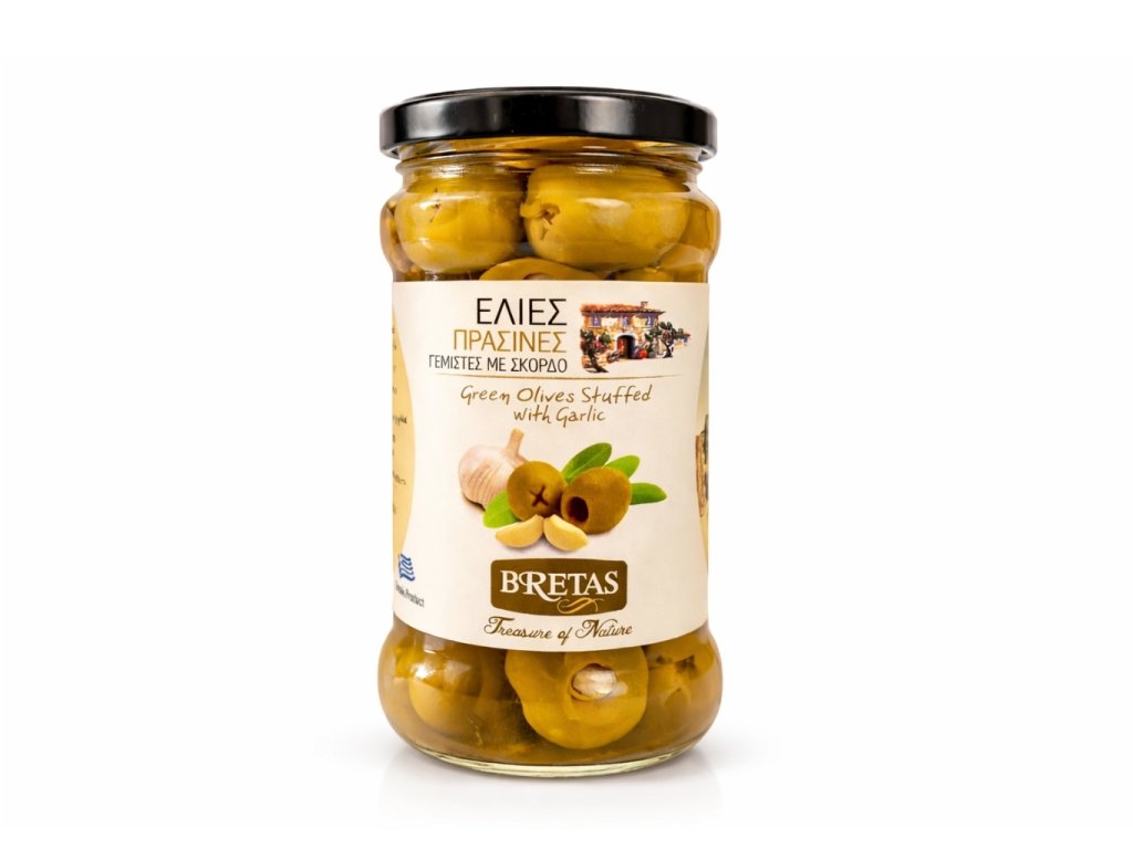 Tyto plněné olivy pocházejí z oblasti Larissa v Řecku, kde má pěstování oliv dlouhou tradici. Olivy jsou ručně vybírané, šetrně zpracované a plněné kvalitním česnekem. Následně se nakládají do jemného slaného nálevu z mořské soli, který zachovává jejich strukturu i chuť.